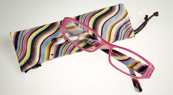 Full lens reading glasses with stripes.